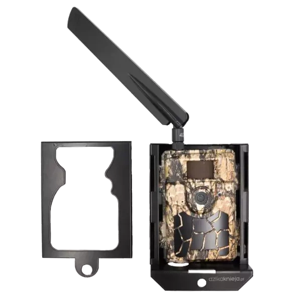 Otwory na tylnej części pozwalają na montaż fotopułapki w obudowie za pomocą metalowej linki lub taśmy.