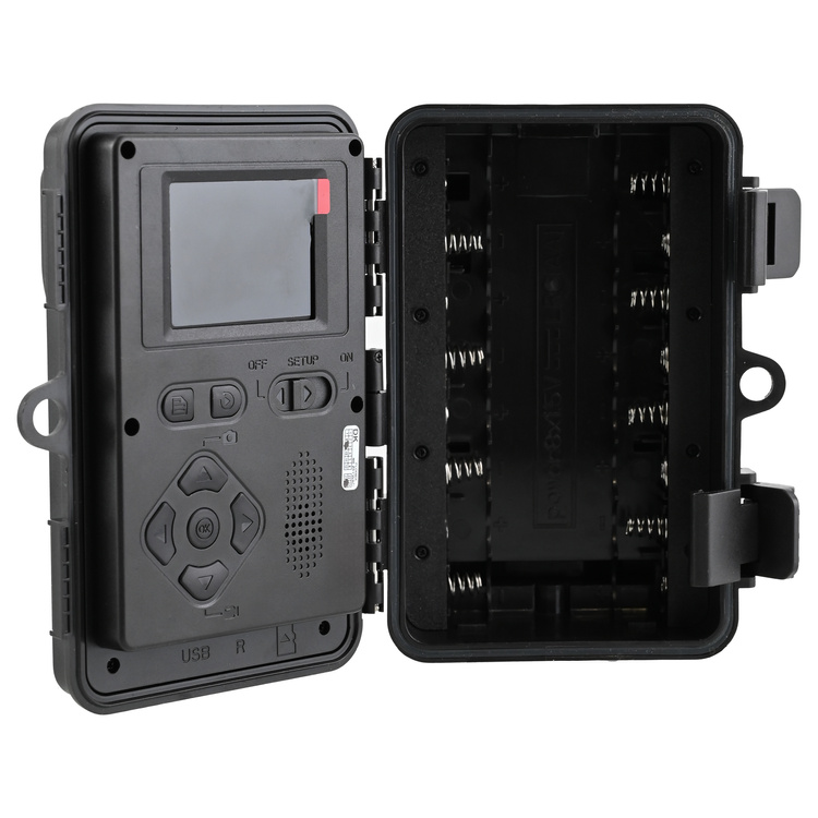 Fotopułapka RF06 została wyposażona w menu w języku polskim, dzięki czemu jej konfiguracja nie sprawia trudności nawet początkującym użytkownikom. Zdjęcia i filmy zapisywane są na karcie microSD (do 128 GB), a ich podgląd możliwy jest bezpośrednio na urządzeniu lub poprzez przeniesienie karty do komputera. Kamera działa na 8 bateriach AA lub akumulatorkach, a dodatkowo można podłączyć zasilanie zewnętrzne, co zapewnia jeszcze dłuższą pracę w terenie.